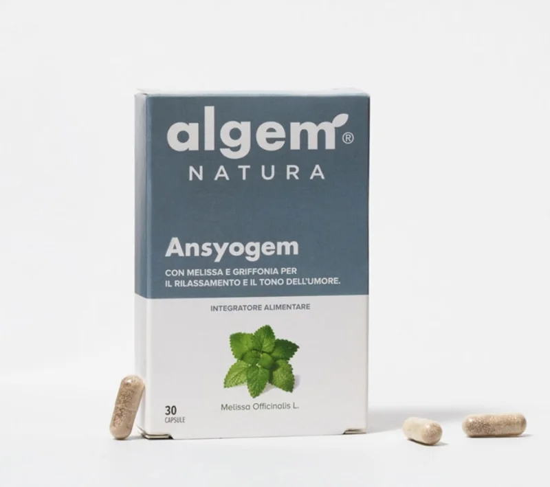 Ansyogem è un integratore alimentare a base di estratti vegetali che favoriscono il rilassamento, il benessere mentale e il normale tono dell’umore. Contiene estratti brevettati di Protizen® (peptidi marini), Bluenesse® (Melissa), Sensoril® (Withania) e Griffonia.
