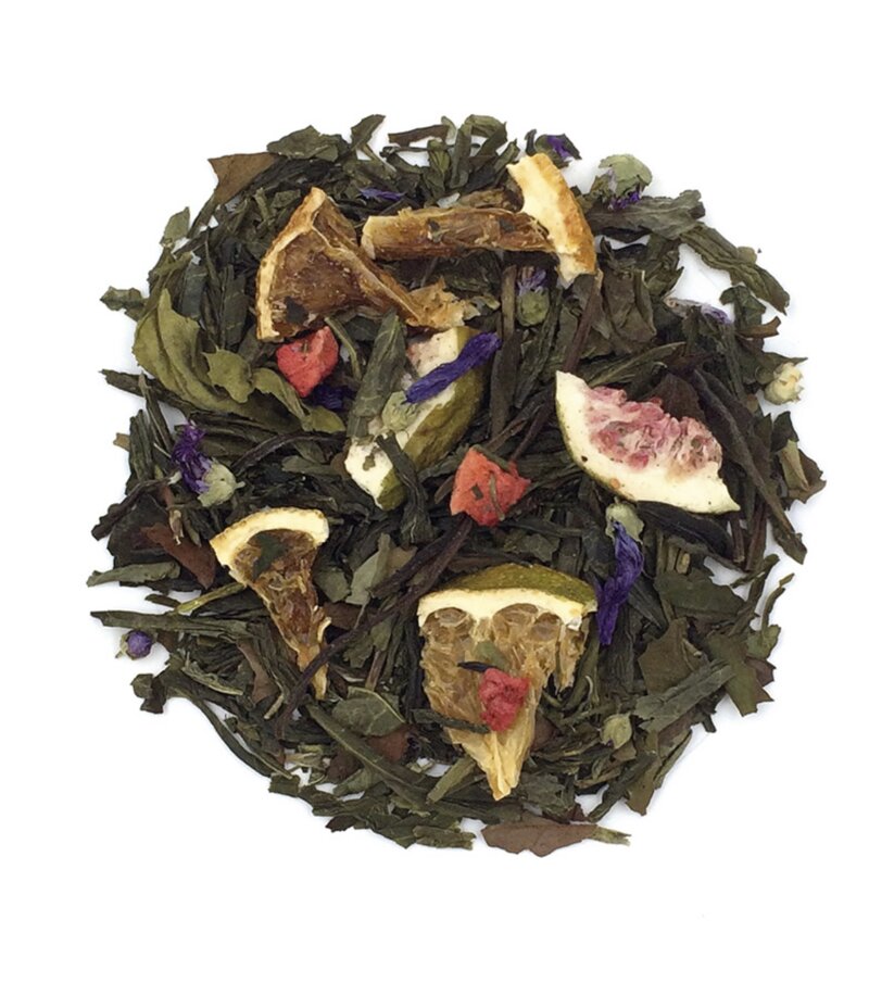 Miscela di tè verde, fichi ed arancia. Una delicata pioggia di fiori di malva accarezza le foglie di tè verde. Preziose foglie di tè bianco unite a scorze di arancia e fichi rendono ancor più seducente questa fragranza.