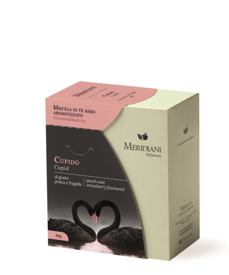 Il tè dell’amore. Una dolcissima miscela in cui le pregiate foglie di té nero fanno da sfondo a numerosi cuoricini rossi di zucchero. L’aroma di pesca e fragola la rende perfetta per scadare il cuore agli innamorati.