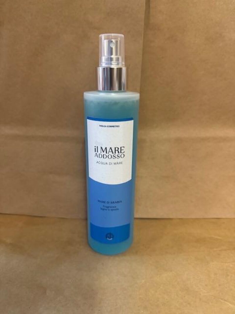il mare addosso acqua di mare rinfrescante a base di estratti di mare ,Vitamina E, acido ialuronico, Senz ‘alcohol.