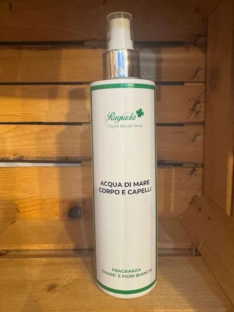 L’ acqua di Mare è un’acqua idratante e rinfrescante, delicatamente profumate. Frutto di un’attenta composizione a base di acqua di mare, aloe, acido ialuronico, eufrasia e alghe marittime è particolarmente indicata per tonificare e profumare corpo e capelli.