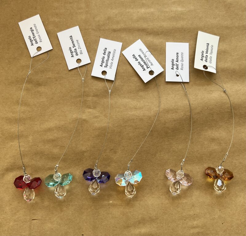 Gli Angeli di Cristallo sono 12 piccoli cristalli colorati a forma di angelo.