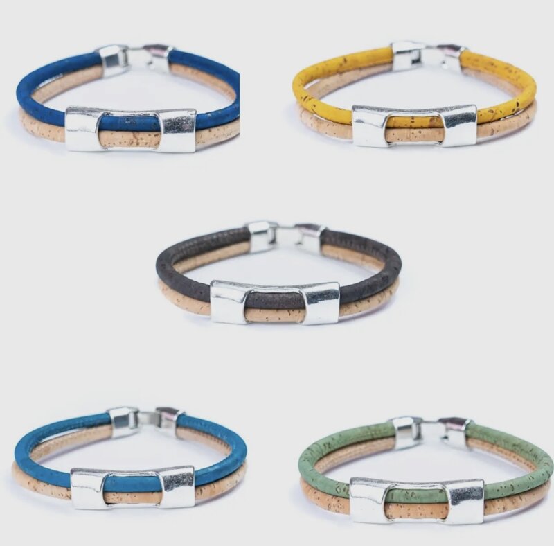 Bracciale da uomo in sughero con chiusura e dettagli in acciaio.