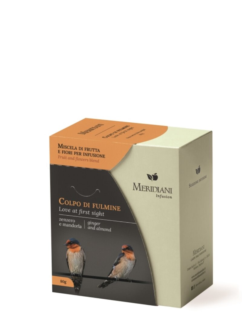 Infuso mandorla e zenzero. Secondo Platone sarà un colpo di fulmine a farci ritrovare la nostra l’esatta metà, quella da cui le divinità malevole ci avevano diviso dalla nascita per mezzo di un altro colpo di fulmine. In questa miscela note dolci e pungenti si fondono perfettamente grazie all’incontro tra mandorla, mela e zenzero. Amore a prima vista.
