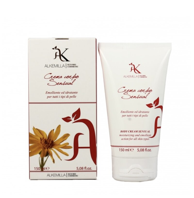 La Crema Corpo - Sensual di Alkemilla Eco Bio Cosmetic è un prodotto ecobio, dal profumo delicato e suadente, ideale per tutti i tipi di pelle. È un crema unica, 100% con estratti vegetali biologici, ad azione idratante e rivitalizzante. La sua texture si assorbe subito e non lascia la pelle unta.