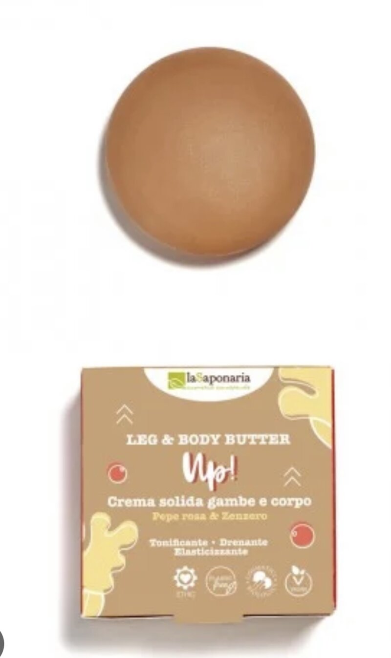 Una crema solida che risveglia i sensi e dona una sferzata di energia alla tua pelle! Ricca di attivi drenanti e tonificanti rende la pelle compatta ed elastica. Il crioestratto di Pepe Rosa agisce sugli accumuli adiposi mentre Rusco e Melograno agiscono sul microcircolo e proteggono i capillari. Un trattamento dal profumo speziato e frizzante con un leggero tocco shimmer per far brillare la tua pelle. Il formato concentrato e compatto rende Up! ideale per essere infilata in valigia o nel borsone della palestra e tonificare la pelle anche fuori casa!