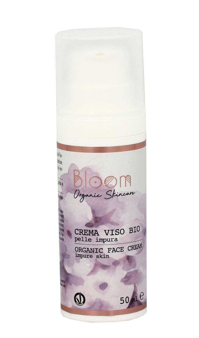La Crema Viso Bio per Pelle Impura della linea Bloom di Naturetica è un trattamento cosmetico a base di estratti vegetali di bardana, cetriolo e fiori di lillà.