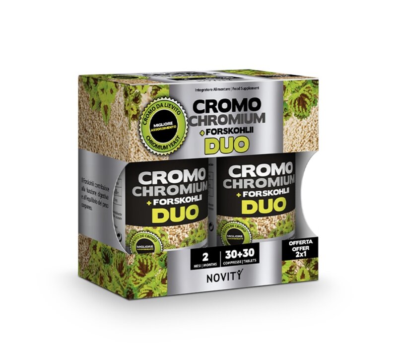 Per 1 compressa: Cromo 100 µg (250% VNR*), Forskohlii (10% in forskolina) 125 mg. * Valore Nutritivo di Riferimento.