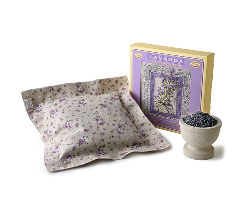 Cuscino alla Lavanda, per un tocco di freschezza! La Lavanda ha alle spalle una tradizione assai consolidata come rimedio popolare e il suo profumo è ancora oggi molto familiare. È anche simbolo di rinascita, addolcisce il carattere e aiuta a eliminare i contrasti. Un tempo veniva usata come rimedio per svariati disturbi, ma soprattutto come acqua cosmetica, insettifugo e per profumare la biancheria.
