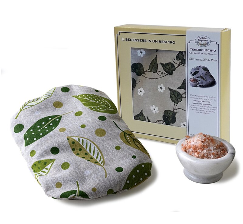 il Sale dell’Himalaya combinato al calore si dimostra molto utile in caso di: tensioni articolari, cervicali, lombari… in quanto emana un calore secco che scioglie rapidamente il dolore. L’aggiunta di olio essenziale di Pino silvestre rende il Cuscino particolarmente efficace per alleviare i disturbi delle vie respiratorie.