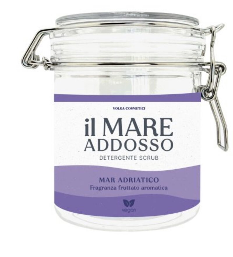 il mare addosso è uno scrub a base di sale marino, detergente e oli vegetali, pensato per la detersione quotidiana di tutto il corpo in alternativa al tradizionale bagnodoccia. L’impiego di ingredienti naturali ne garantisce l’alta tollerabilità cutanea.
