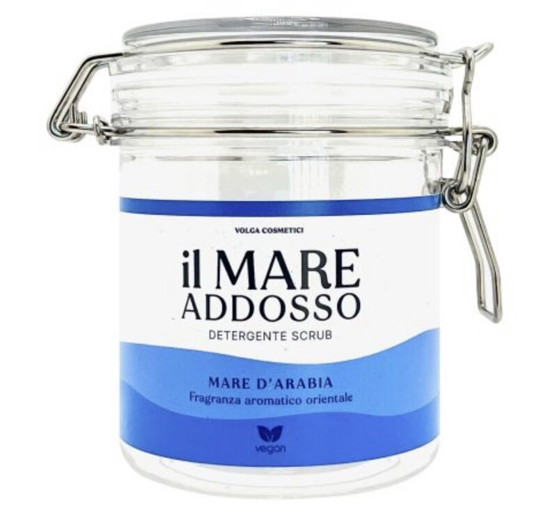 il mare addosso è uno scrub a base di sale marino, detergente e oli vegetali, pensato per la detersione quotidiana di tutto il corpo in alternativa al tradizionale bagnodoccia. L’impiego di ingredienti naturali ne garantisce l’alta tollerabilità cutanea.
