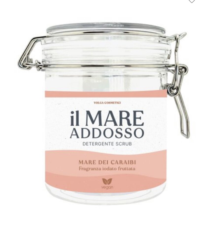 il mare addosso è uno scrub a base di sale marino, detergente e oli vegetali, pensato per la detersione quotidiana di tutto il corpo in alternativa al tradizionale bagnodoccia. L’impiego di ingredienti naturali ne garantisce l’alta tollerabilità cutanea.