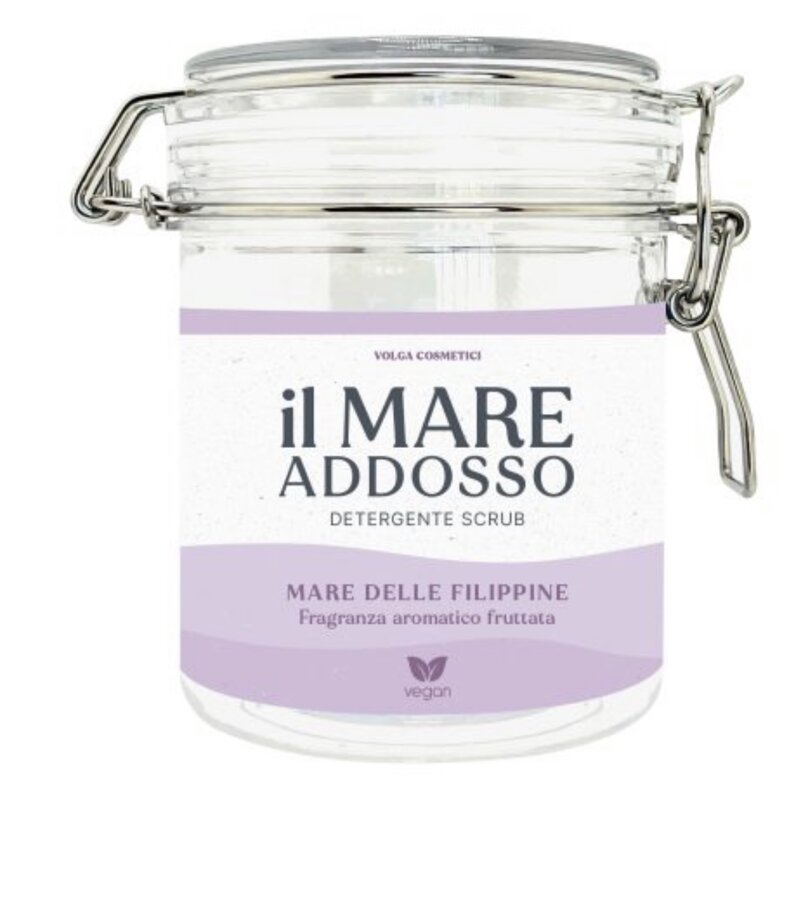il mare addosso è uno scrub a base di sale marino, detergente e oli vegetali, pensato per la detersione quotidiana di tutto il corpo in alternativa al tradizionale bagnodoccia. L’impiego di ingredienti naturali ne garantisce l’alta tollerabilità cutanea.