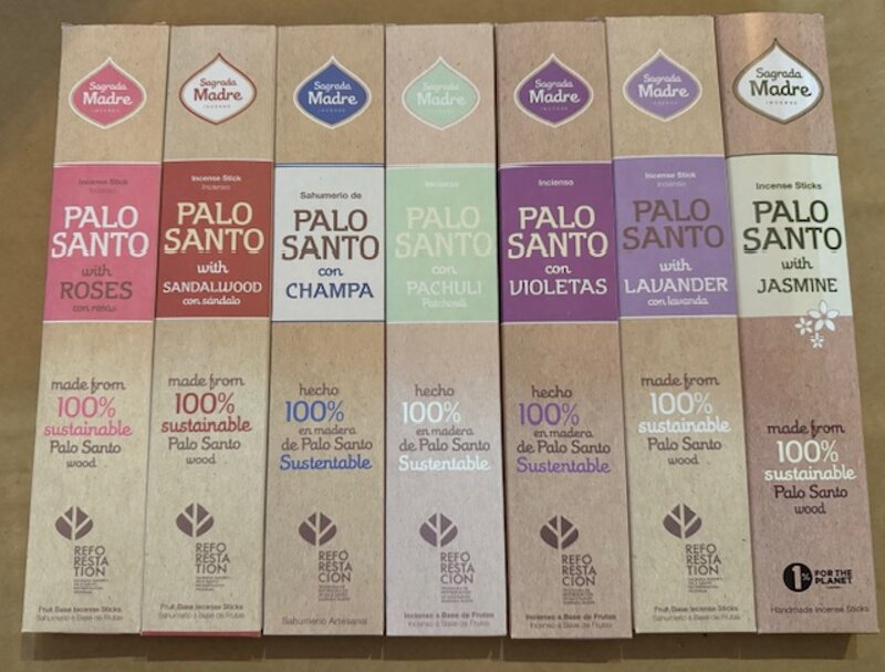 Questa linea di incensi combinano 8 fragranze floreali al potere del legno di Palosanto.