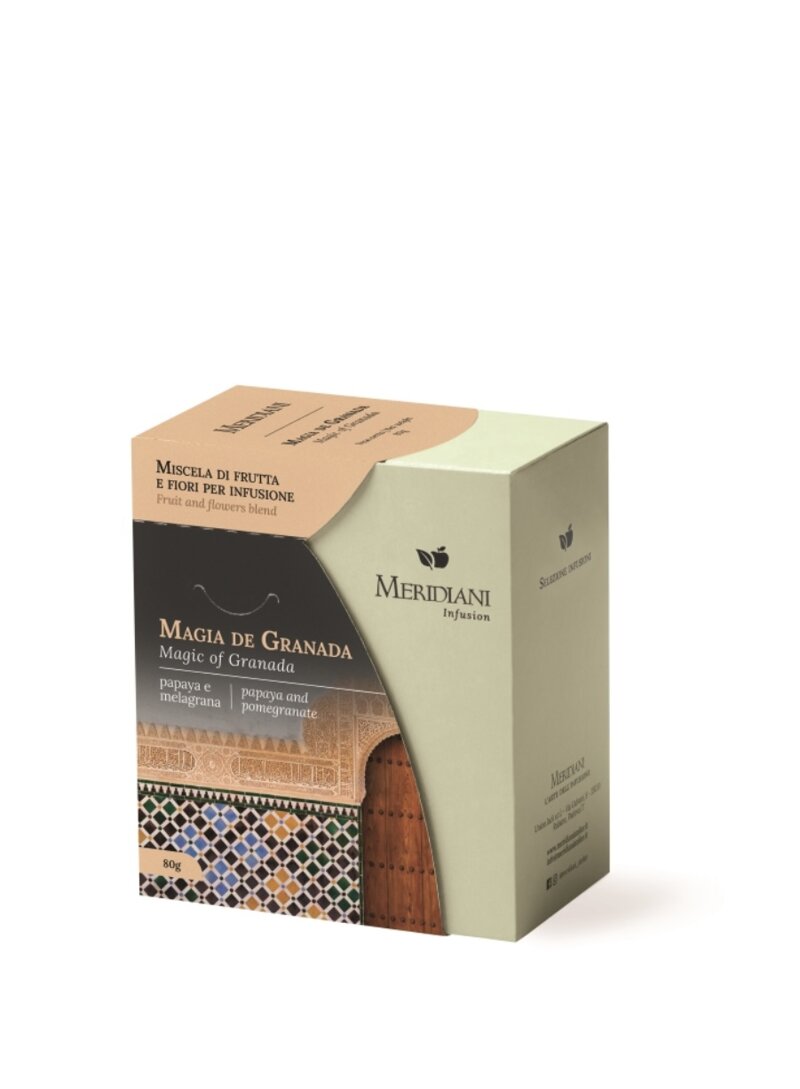 Infuso melograno e papaya. Il melograno venne introdotto in Europa nel corso della dominazione araba. Era conosciuto originariamente con il nome di mela di Granada. Il suo tipico sapore aspro è reso più mite da mango e papaya. Questa unione crea una miscela dolce e particolarmente dissetante.