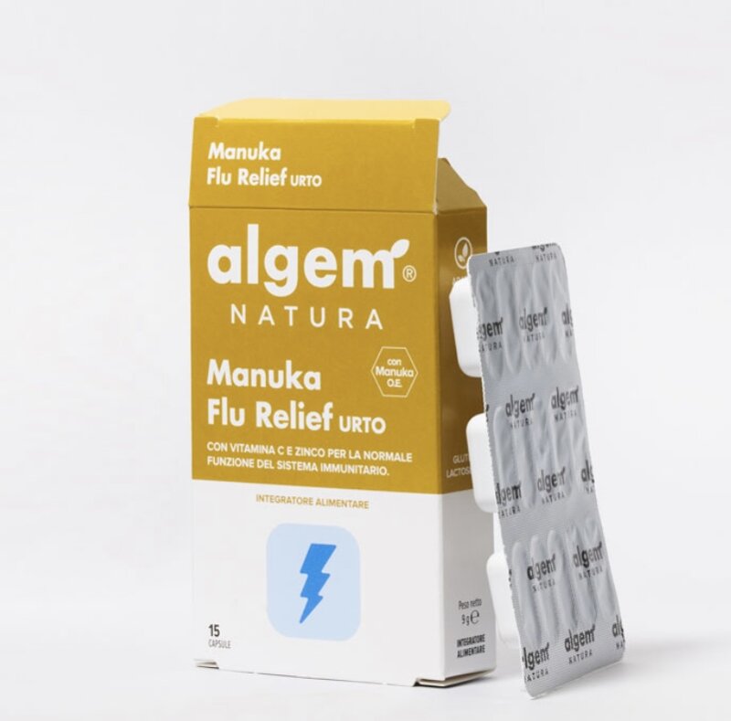 Manuka Flu Relief Urto è un integratore alimentare a base di olio essenziale di Manuka, Vitamina C e Zinco con estratti vegetali di Salice, Rhodiola e Andrographis per le naturali difese dell’organismo e la funzionalità delle prime vie respiratorie. Il prodotto è indicato per contrastare i primi sintomi influenzali quali febbre, congestione, dolori reumatici e mal di testa.