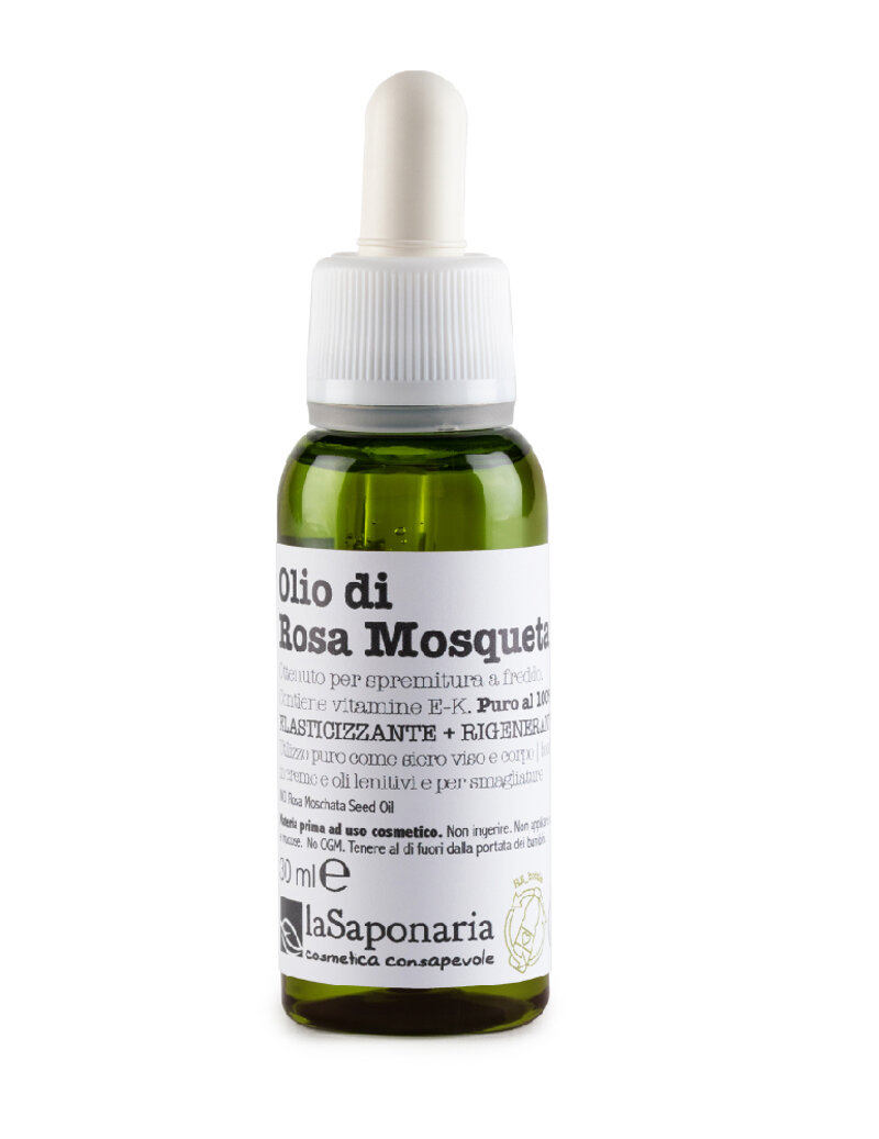L’olio di rosa mosqueta è un preziosissimo alleato della nostra bellezza. È ricco di acidi grassi polinsaturi, come l'acido linoleico (ricostituente cutaneo), vitamina E (antiossidante) e K (utile per combattere couperose ed invecchiamento cutaneo), squalene (emolliente ed antiossidante) e vitamina A (stimola il rinnovamento cellulare). Il nostro olio puro è ottenuto per spremitura a freddo ed è puro al 100%.