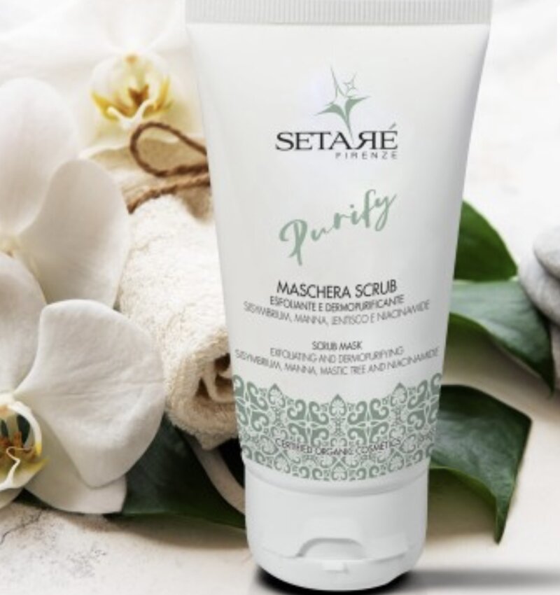 In seguito alla detersione con la Mousse Detergente Viso è utile, periodicamente, un’azione di pulizia più profonda per liberare i pori da ogni traccia di impurità della pelle sensibile, con comedoni o a tendenza acneica. Questa Maschera Scrub, fresca e delicata, agisce da maschera sebo-regolatrice per purificare la pelle e da scrub utile a rimuovere cellule morte e punti neri. Combatte la proliferazione batterica, lenisce gli arrossamenti e favorisce la formazione di una pelle più bella, più sana e meno lucida. Questi benefici sono da attribuire all’azione combinata di Sisymbrium, Manna e Lentisco, dotati di grandi proprietà antisettiche, antinfiammatorie e di stimolazione del turnover cellulare. In combinazione al Niacinamide che con il suo potere di leggera esfoliazione elimina le imperfezioni, combatte i punti neri, rende la pelle più omogenea e i pori meno dilatati.