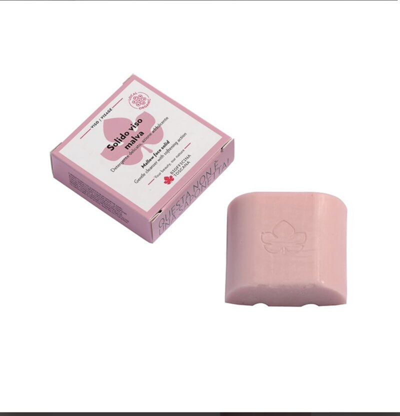 “Solido viso malva” non è un semplice sapone ma un innovativo e sostenibile detergente senza acqua, plastic-free, studiato per ridurre gli sprechi ed indicato per detergere delicatamente la pelle del viso. È infatti formulato senza processo di saponificazione, come un vero e proprio detergente liquido ma senza acqua.