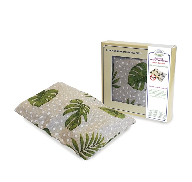 CUSCINO ANTIZANZARE NATURALESi chiama Cuscino Sonni tranquilli senza zanzare e non ha bisogno di altre presentazioni. E’ un cuscino antizanzare naturale! Per riposare bene tutta l’estate, allontanando i fastidiosi attacchi delle zanzare, basta tenere accanto a sé questo cuscino. Lasciate quindi che la sua delicata fragranza si diffonda nell’ambiente.