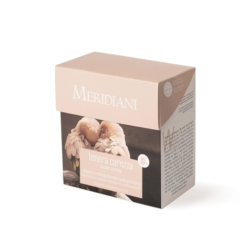 Infuso ciliegia e melograno. Il calore del palmo di una mano che teneramente sfiora una guancia rivive in questa miscela. La morbida dolcezza delle ciliegie rosse più mature si mescola agli straordinari toni fruttati del melograno. Una piacevole inaspettata sorpresa che coccola spirito e gusto.